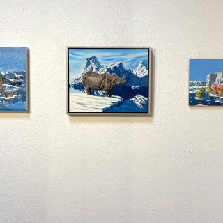 We now live in a new geological epoch known as the “Anthropocene.” This period refers to the significant human impact on species extinction and the climate since 1950. I chose to integrate imagery from 17th century Dutch still life paintings because this genre developed in tandem with trade, colonialism, market capitalism, and consumption. These traditional paintings displayed both local and global riches in the form of food items, Chinese porcelain, Persian carpets, and even citrus fruits imported from the Mediterranean. During the height of the “Tulip Mania” in the Netherlands, a tulip market bubble fueled by frenzied purchases of rare bulbs, some tulips cost the same amount as a home. By working within and against these traditional methods, I call these historical foundations into question and ask viewers to look at art history in a new light. Juxtaposing icebergs with imagery from traditional Dutch paintings also asks us to examine how the historical relationship between humans and the environment has generated a legacy of a warming planet.